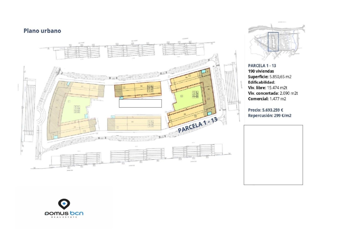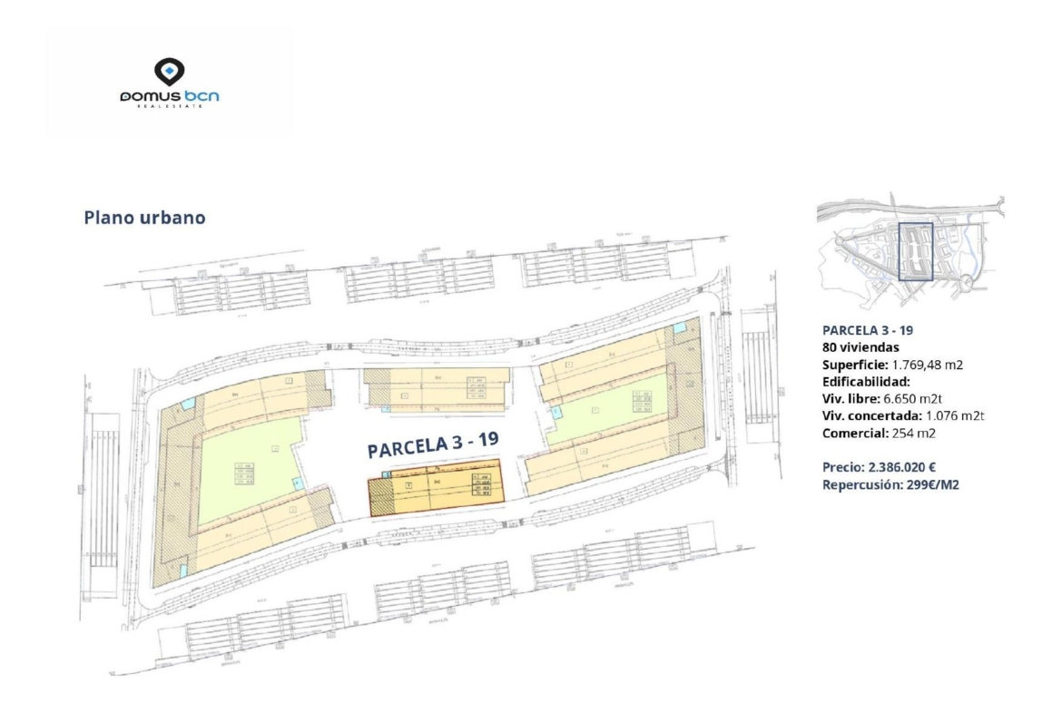 Diferentes solares urbanizables en la zona de Can Colomer, en Terrassa.~Parcela 1-19: superfície 1769m2 80 viviendas + zona comercial + garajes y trasteros. ~USO: Residencial, consistente en vivienda libre y concertada y comercial.~Precio: 2.386.020€~~Parcela 2-13: superfície 5850m2 190 viviendas + zona comercial + garajes y trasteros. ~USO: Residencial, consistente en vivienda libre y concertada y comercial.~Precio: 5.693.259€~~Disponemos de PROYECTO para su valoración, de los diferentes solares. No dude en ponerse en contacto con nosotros.~~Cerca de la estación de FFCC y Renfe.~Inversión con futuro asegurado, que forman parte de un desarrollo urbanístico planeado con visión a largo plazo.~Ubicación Privilegiada: Situados en una de las zonas más prometedoras de Terrassa, estos terrenos gozan de una ubicación estratégica con fácil acceso a las principales vías de comunicación, servicios y centros comerciales.~Rodeados de áreas verdes y con un entorno tranquilo, en lo que será una de las zonas residenciales más privilegiadas.~Terrassa es una ciudad en constante crecimiento y desarrollo. ~El comprador asumirá los gastos relativos a su parte de la compravente. Y la parte del 65% pendiente de los gastos de urbanización.~~~